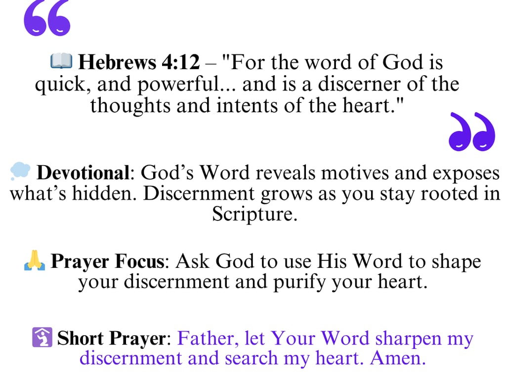 This verse reveals the living power of God’s Word. Scripture is not just text.. it’s alive with divine truth and authority. God’s Word has the power to pierce deeply into our hearts, exposing motives, refining our character, and bringing transformation from the inside out.