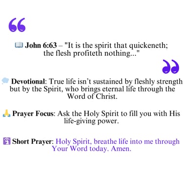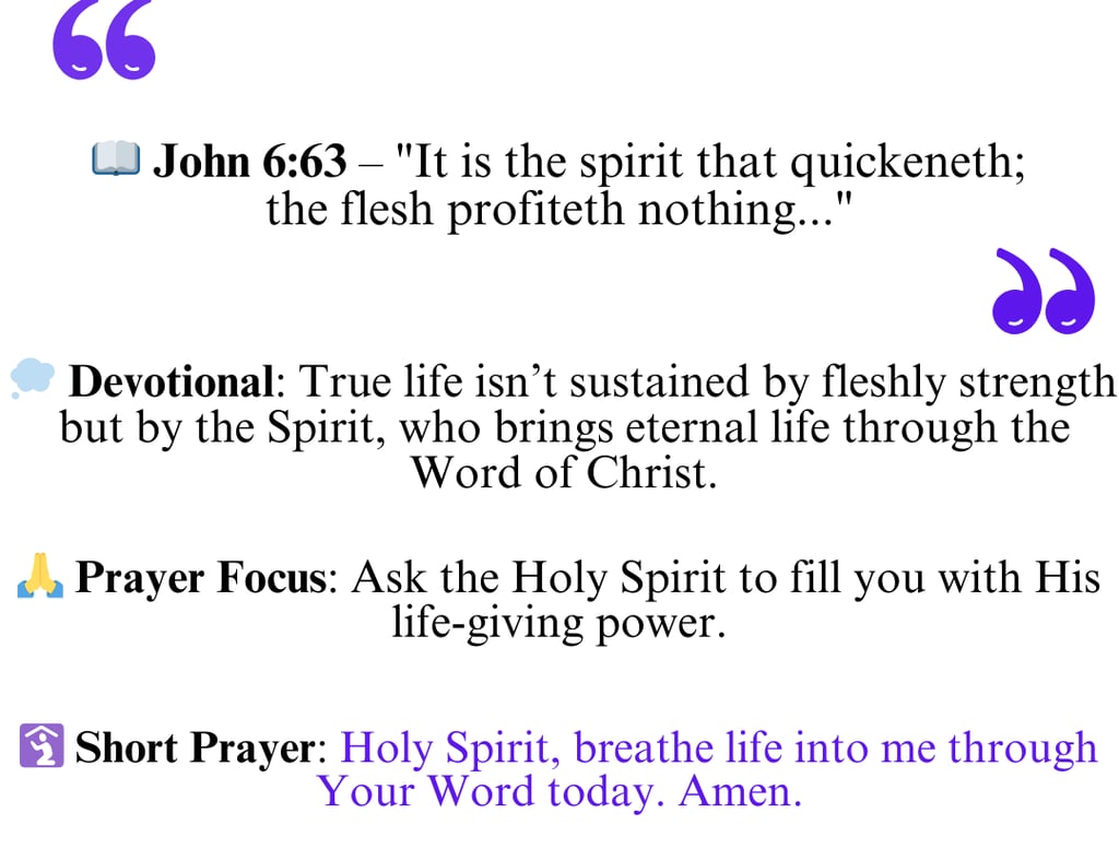 In daily life, this means we shouldn’t rely on our own strength, wisdom, or abilities alone. Instead, we are called to lean on God’s Spirit, allowing His Word to shape, guide, and breathe life into us. When we live by His Spirit, our hearts, minds, and actions are transformed with purpose and power.