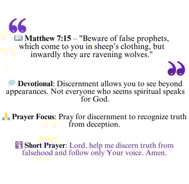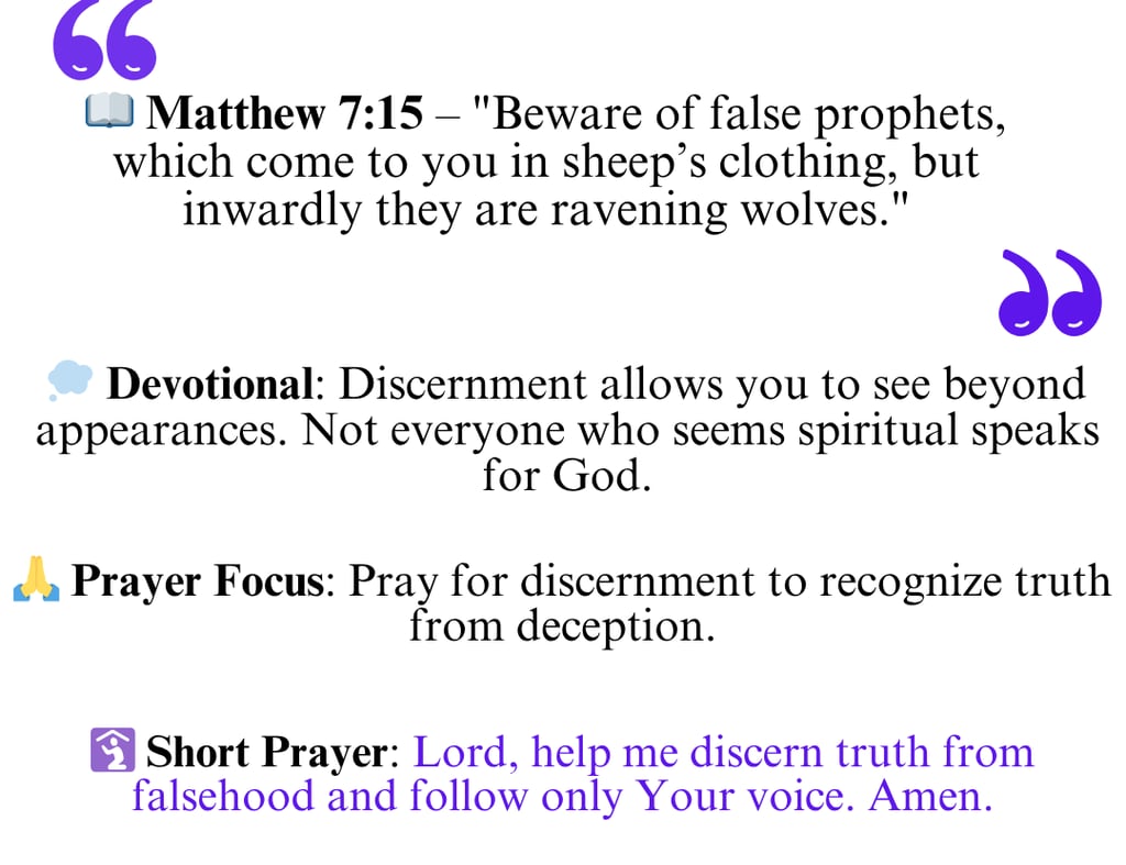 In daily life, this means being spiritually alert and discerning. We should test teachings, leaders, and influences by the truth of God’s Word and the fruit of their lives. True servants of God lead with humility, love, and integrity. By staying rooted in Scripture and guided by the Holy Spirit, we can recognize truth from deception and remain firm in our faith.