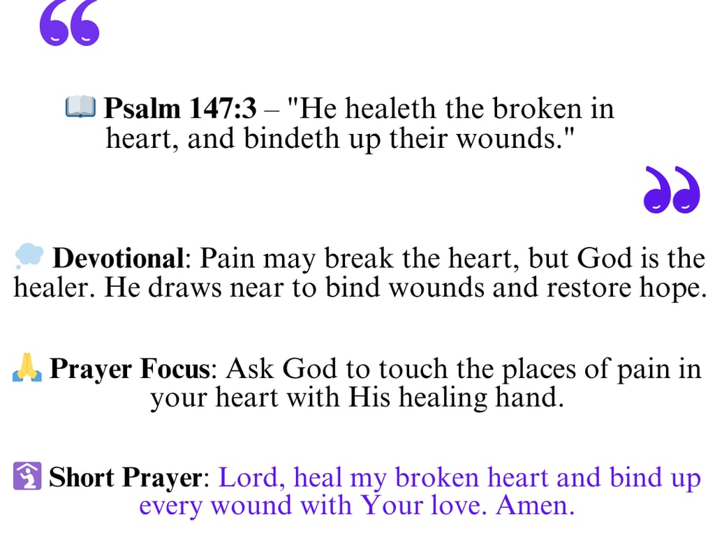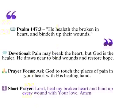 This verse shows God’s tender care and compassion. He doesn’t just see our pain.. He actively steps in to bring healing and restoration. His love reaches the deepest hurts, offering comfort where nothing else can.